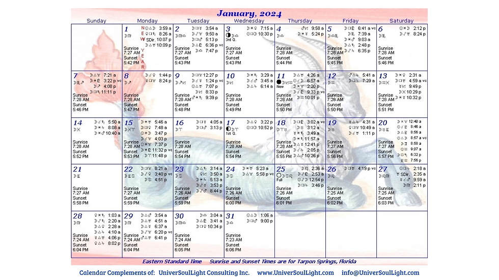 Calendar - Full Year 7 Day Summary, Monthly Details Plus Extras
